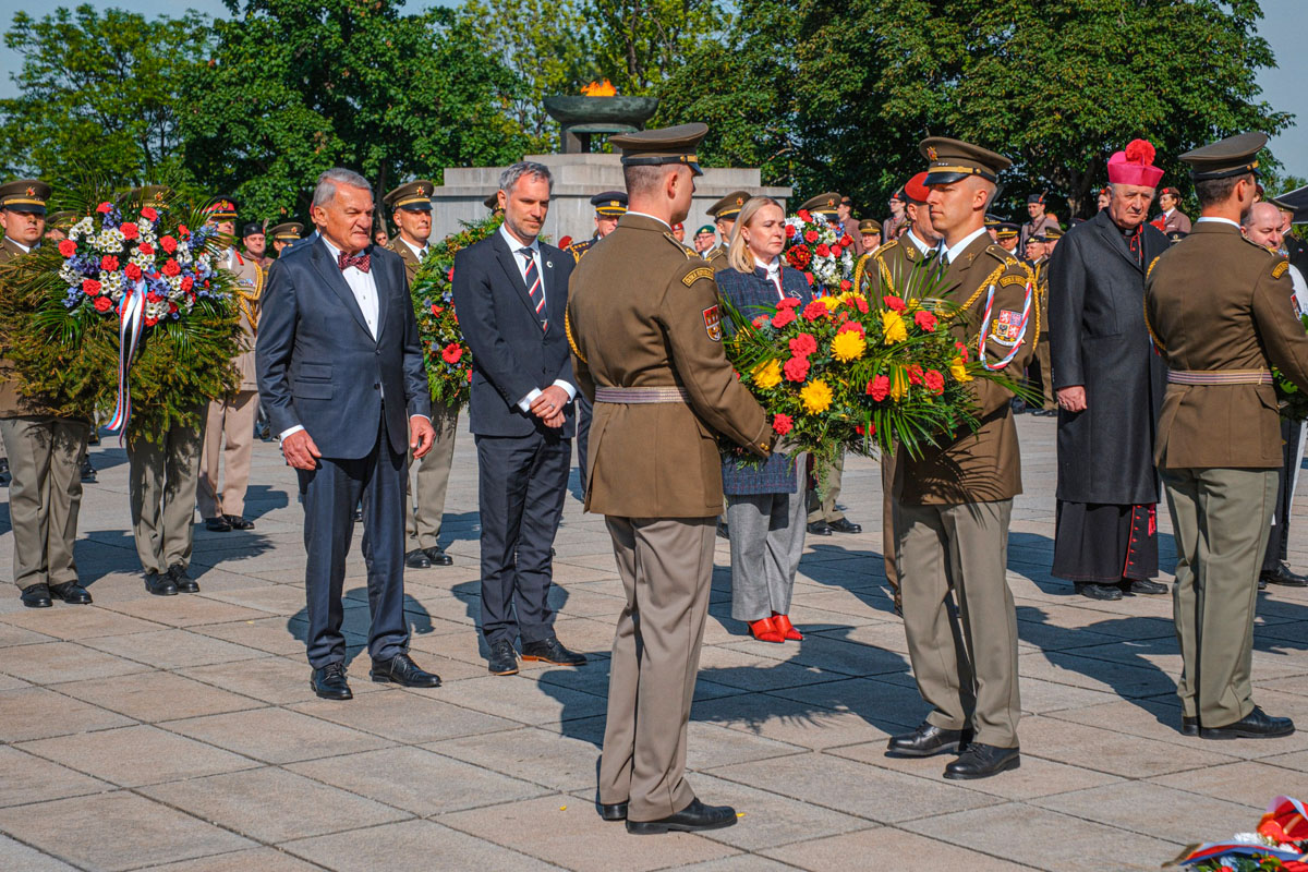 Венки возложили президент республики Петр Павел, премьер-министр Петр Фиала, главы обеих палат парламента Милош Выстрчил и Маркета Пекарова-Адамова, министр обороны Яна Чернохова, мэр Праги Богуслав Свобода, архиепископ столицы Ян Граубнер, несколько ветеранов и действующих генералов чешской армии, другие политики и общественные деятели.
