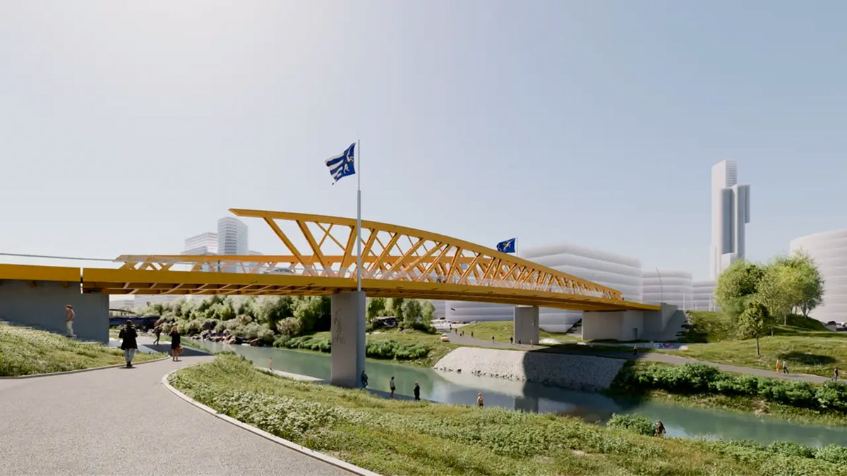 «Новый мост соединит обе части города – Моравскую Остраву и Силезскую Остраву. Каждая имеет свой характер, поэтому мост имеет асимметричные части несущей конструкции, которые символически встречаются над рекой.