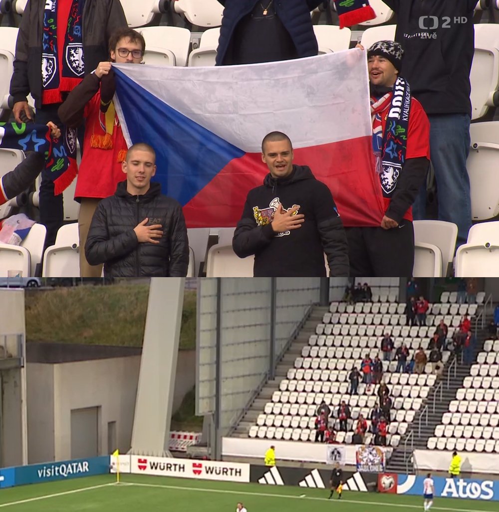 На гостевом секторе Чехию поддерживали около 25 болельщиков, приехавших на непростой и довольно затратный выезд.