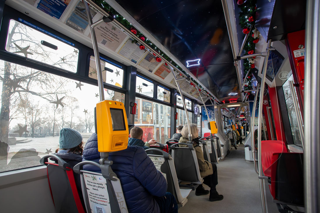 - состав Škoda 14T, в котором между остановками из колонок звучали рождественские колядки: