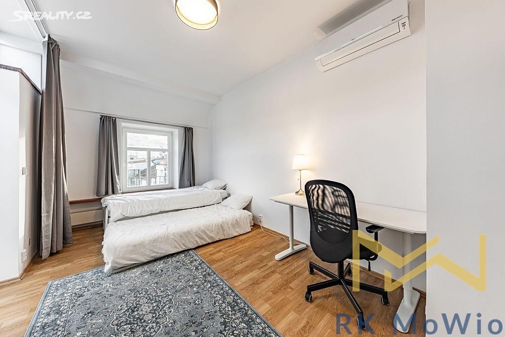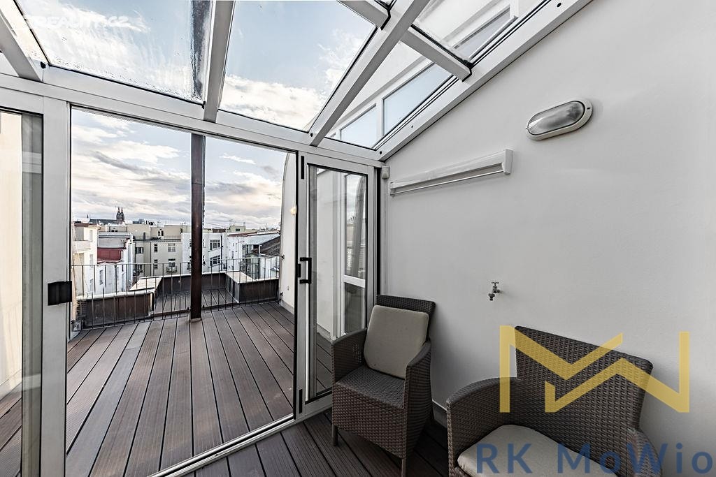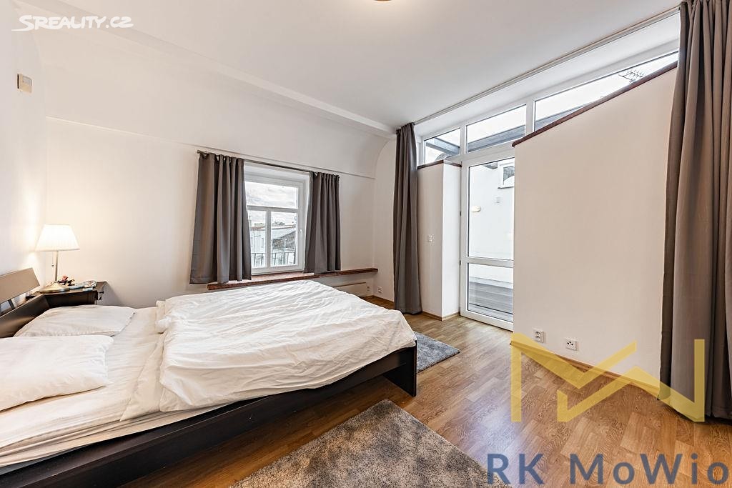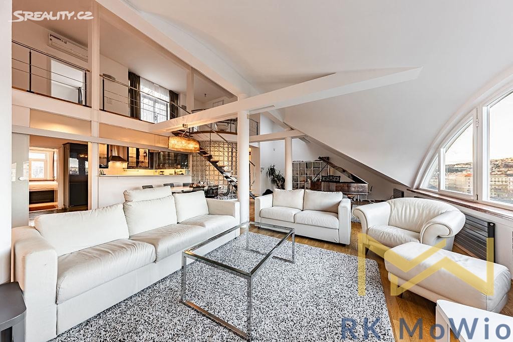 Предлагается в аренду меблированная бархатная двухуровневая квартира с роскошными элементами, планировкой 5+1 и общей площадью 250 м², расположенная на 6-м и 7-м этажах (7-й и 8-й надземные этажи) дома с лифтом на улице Држевна в Праге 2 – Нове Место.